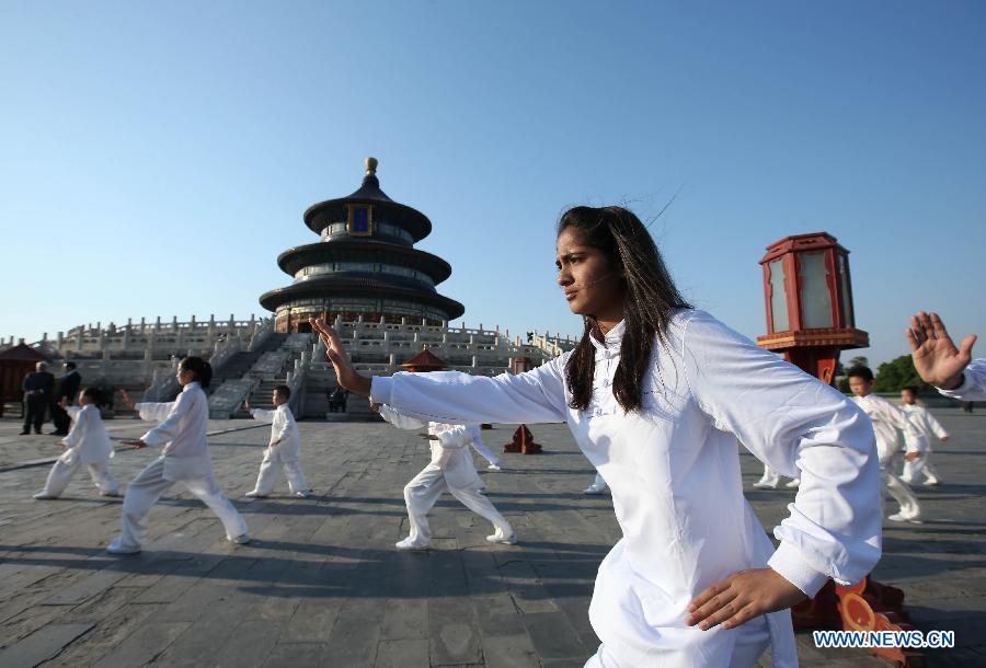 On Friday afternoon, the two prime ministers attended a cultural activity featuring taiji and yoga, typical of the two countries, in the Temple of Heaven in downtown Beijing, where more than 400 practitioners performed. Taiji and yoga seem different, but they have the same objective of harmony between heaven, people and the heart, and embody cultural inheritance, Li said.
