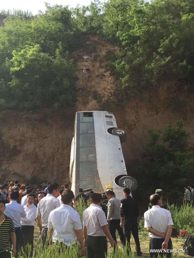 The accident happened at 3:27 p.m., when a bus carrying 46 plunged 30 meters into a ravine in Chunhua county, said an official with the county's publicity office.