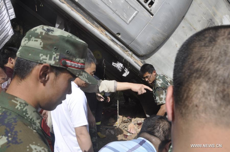 The accident happened at 3:27 p.m., when a bus carrying 46 plunged 30 meters into a ravine in Chunhua county, said an official with the county's publicity office.