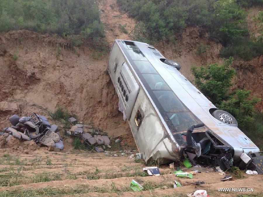 The accident happened at 3:27 p.m., when a bus carrying 46 plunged 30 meters into a ravine in Chunhua county, said an official with the county's publicity office.