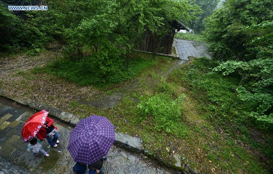 Photo taken on May 17, 2015 shows a stream in Yangmei ancient village of Laifeng County, central China's Hubei Province. The ancient village, with a history of hundreds of years, was named after its rich production of waxberries. There are 34 waxberry trees aged over 300 years, and 108 others aged over 100 years. The village has now developed into a scenic spot for traditional customs and folk culture, attracting tourists all around the nation. (Xinhua/Song Wen)