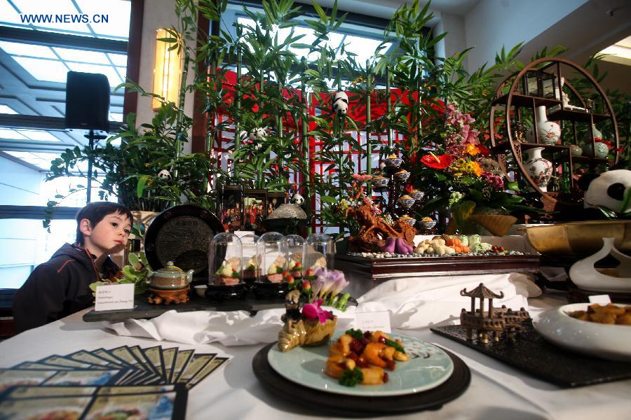 A child views a Chinese food exhibition during the opening ceremony of "Experience China" culture event in Berlin, Germany, on May. 17, 2015. (Xinhua/Zhang Fan)