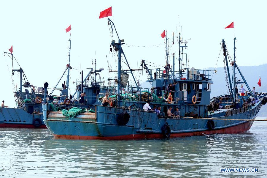 Violators are detained on the sea in southeast China's Fujian Province May 15, 2015. The Fujian maritime law enforcement department has taken measures to crack down on illegal fishing in the three-month fishing suspension in the Fujian sea areas starting on May 1. (Xinhua/Zhang Guojun)