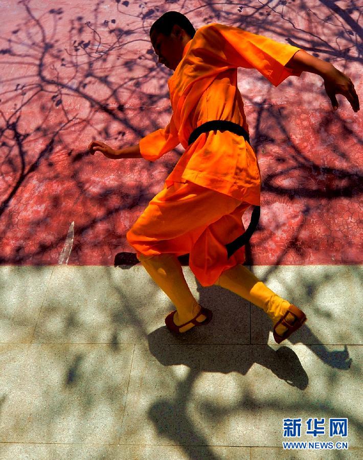 A monk displays Qinggong, May 13, 2015. (Xinhua/Wei Peiquan)