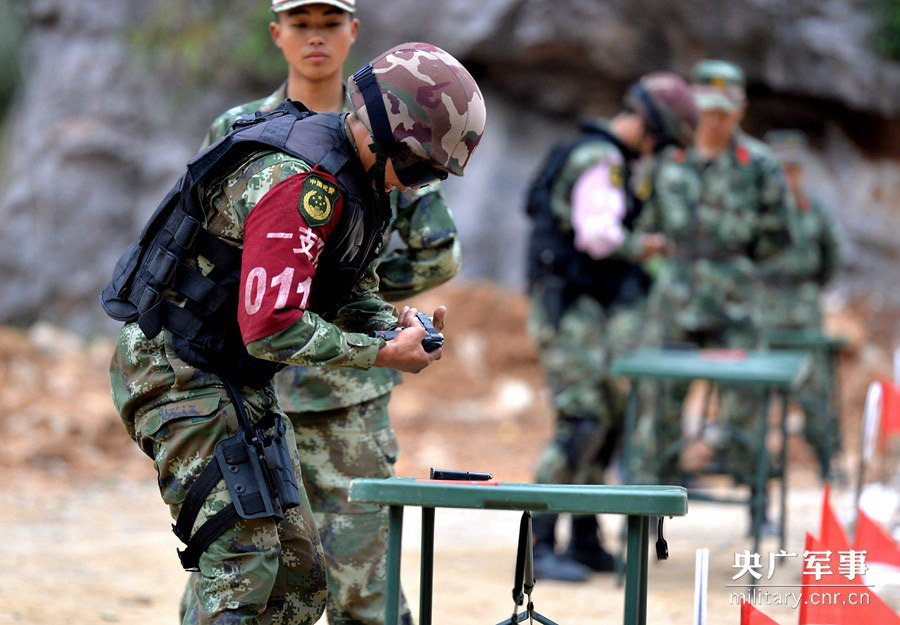 About 200 sharpshooters from different units of the armed police force in the city attend a shooting contest in southwest China’s Chongqing on May 12 to May 15, 2015. The contestants fulfilled shooting tasks in a series of scenarios, displaying their excellent combat ability. (Photo source: cnr.cn)