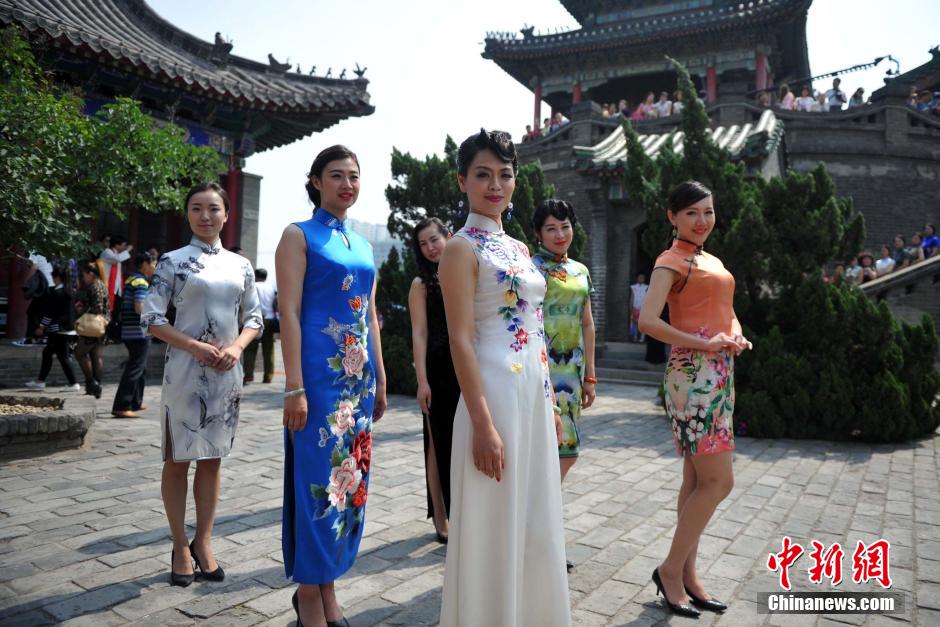 1,100 women stage a Cheongsam show in Handan, north China's Hebei Province, May 16, 2015. (CNS/Zhai Yujia)
