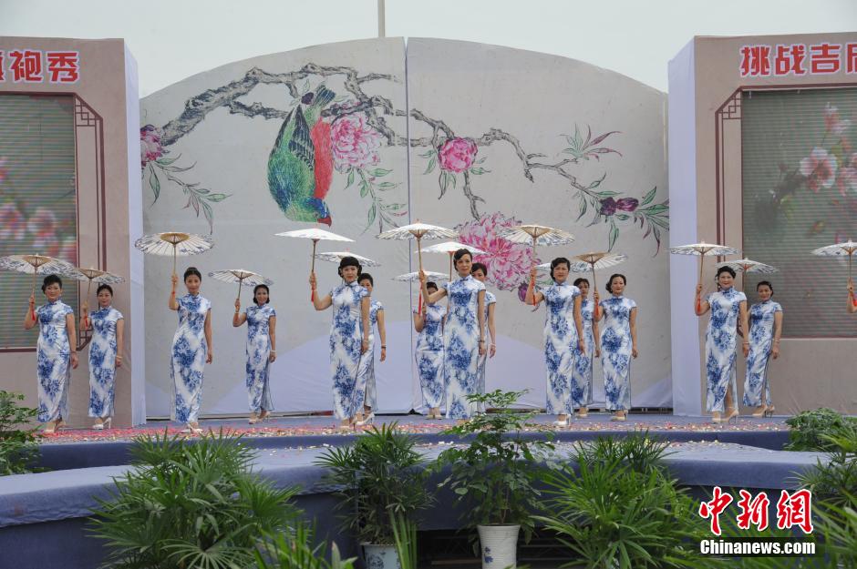 Women stage a Cheongsam show in Mianyang, southwest China's Sichuan Province, May 16, 2015. (CNS/Zhai Yujia)