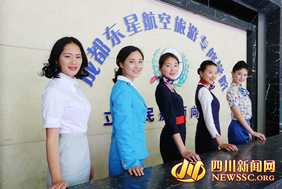 Students present the air stewardess uniforms of the past in Chengdu East Star Airlines Travel College, southwest China's Sichuan province, May 12, 2015. You can see the fashion changes through the years when you look at these uniforms. (Photo/newssc.org)