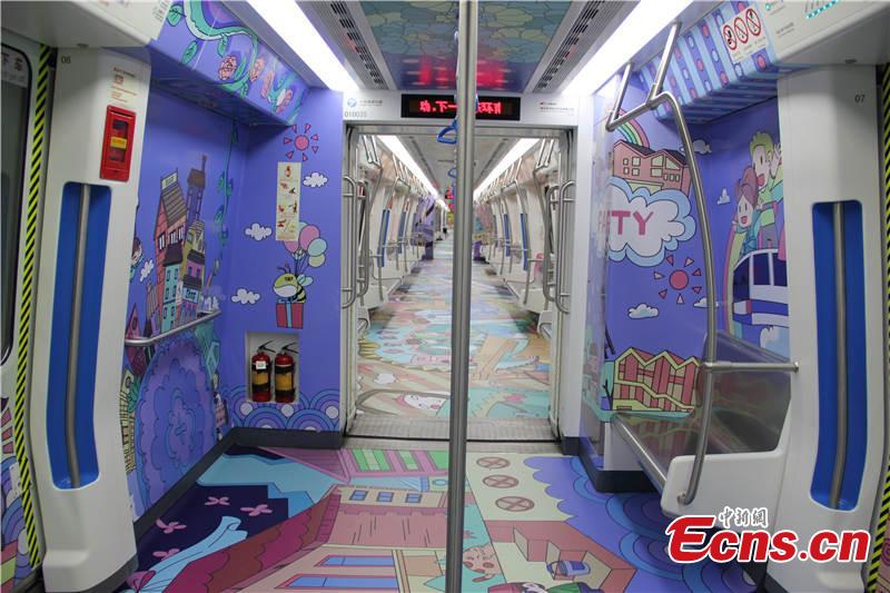 A subway train themed with Maritime Silk Road culture runs in Ningbo city, East China’s Zhejiang province, May 20, 2015. The train mainly uses cartoons and paintings to illustrate the ancient voyage route that connected Ningbo with many cities in other countries. Many people have taken the train to take pictures or better understand the region's history. (Photo: China News Service/Lin Bo)