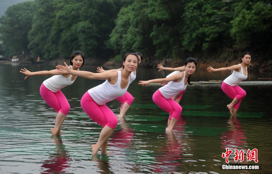 Beauties perform Yoga on water in Changsha (8)