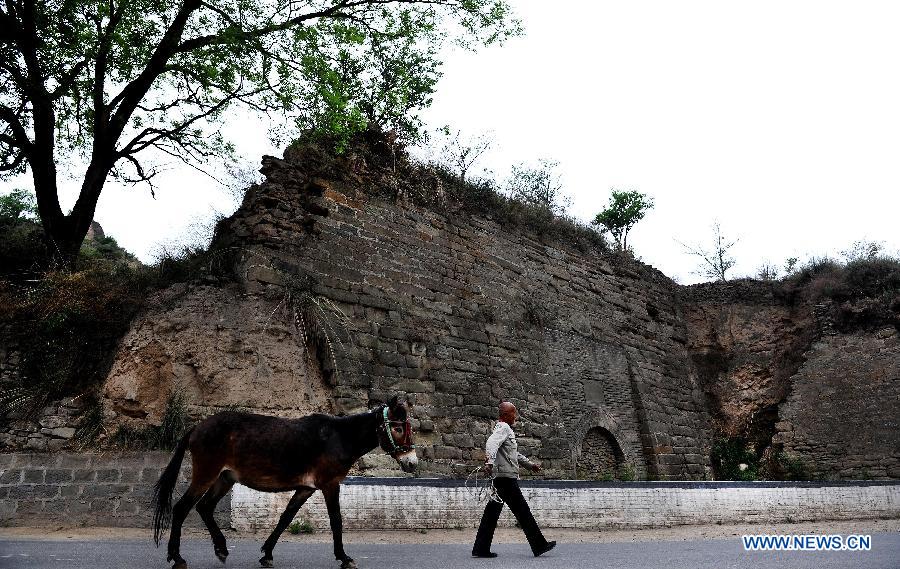 A resident walks past the site of the west gate of Anding Town of Zichang County, northwest China's Shaanxi Province, May 20, 2015. The 1,600-year-old Anding Town has well-preserved Zhongshan Mountain Grottoes and other architectures of ancient times. (Xinhua/Tao Ming) (Xinhua/Tao Ming)