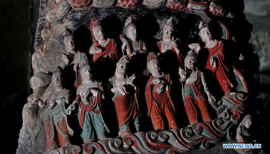 Photo taken on May 20, 2015 shows Buddha statues in a grotto in Anding Town of Zichang County, northwest China's Shaanxi Province. The 1,600-year-old Anding Town has well-preserved Zhongshan Mountain Grottoes and other architectures of ancient times. (Xinhua/Tao Ming)