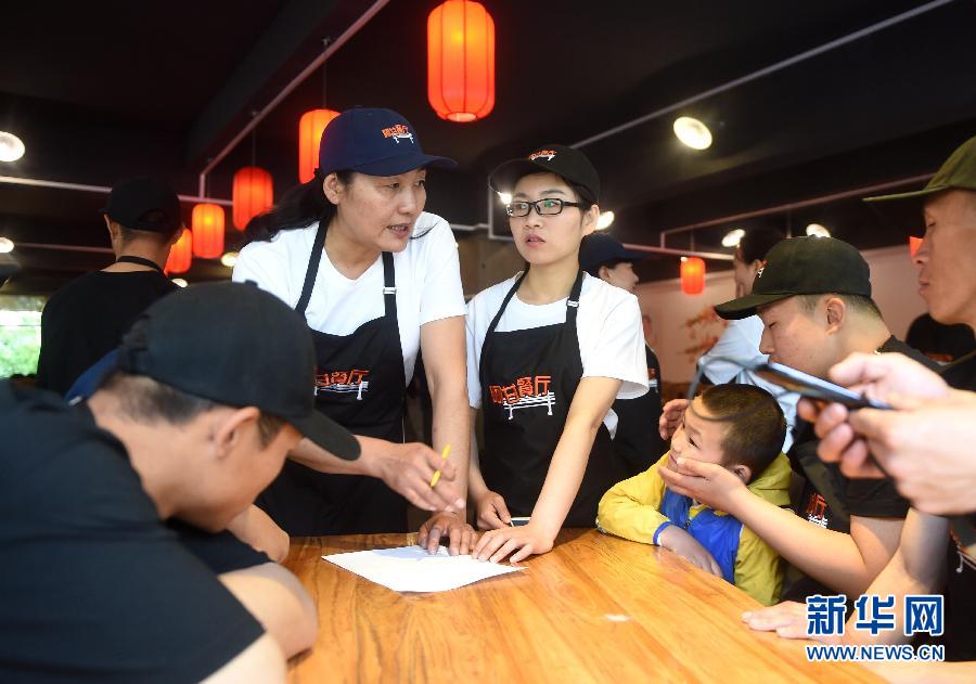 The manager teaches table manners, May 19, 2015. (Xinhua/Lin Hong)