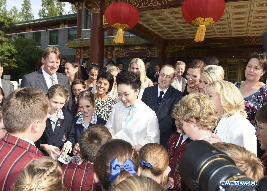 BEIJING, May 21 (Xinhua) -- Peng Liyuan, Chinese President Xi Jinping's wife, met with a group of Australian youngsters from Tasmania Thursday afternoon at the Diaoyutai State Guesthouse in central Beijing.