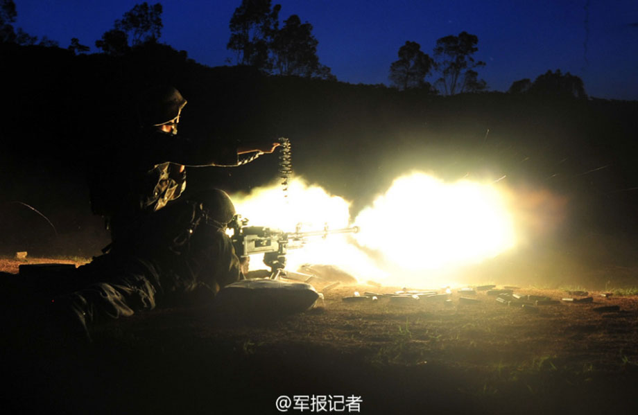 A regiment of China's 31st Group Army carries out live fire exercise with heavy machine guns to perfect their combat skills at night.(Photo/81.cn)