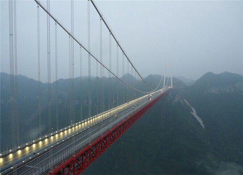Aizhai Suspension Bridge is the world's highest and longest tunnel-to-tunnel suspension bridge above Dehang Canyon. It is part of National Highway 65 (G65), above Aizhai Winding Road. The bridge is more than 300 meters above the ground. It shortens the journey between Chongqing and Changsha from several days to just 8 hours.