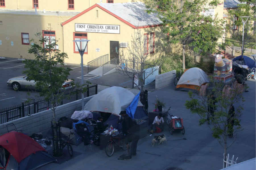 Shadow of Silicon Valley: homeless camp nestling before city hall (2)