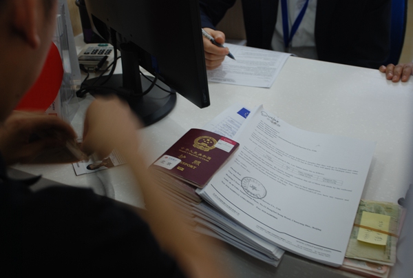 | The first applicants apply for visa in the center on May 22, 2015. (People's Daily Online/Yuan Can) |