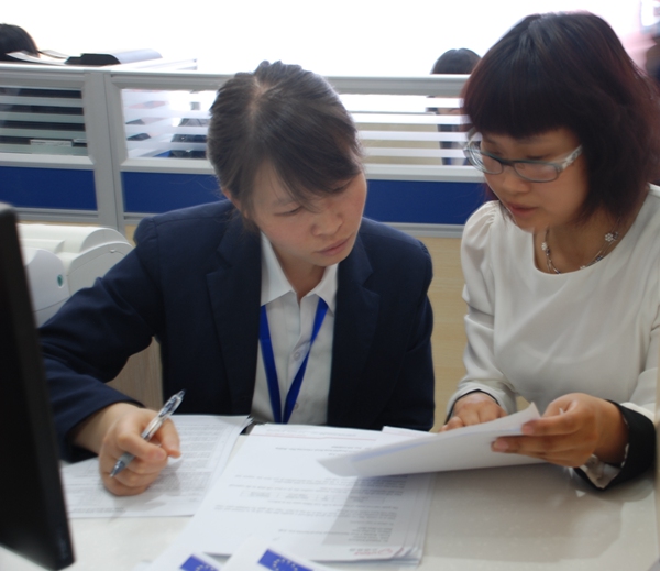 | Staff members in the center help to check application material on May 22, 2015. (People's Daily Online/Yuan Can) |