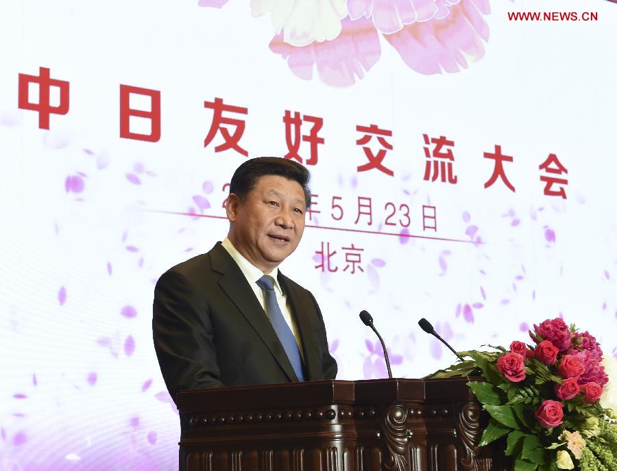 | Chinese President Xi Jinping delivers a speech while attending a gathering of more than 3,000 Japanese visitors to support people-to-people exchanges between the two nations in Beijing, capital of China, May 23, 2015. (Xinhua/Li Xueren) |