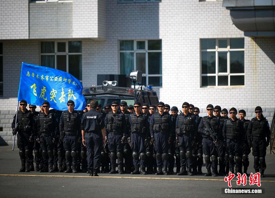 | Special police force conducted multi-subject training in Urumqi, northwest China’s Xinjiang Uygur Autonomous Region on May 21, 2015. The training subjects included 110-meter steeplechase, abseiling, physical training, shooting, etc. Established in 2010, the special police force of Xinjiang has played an important role in combating terrorism and maintaining social stability. (Chinanews/Liu Xin) |