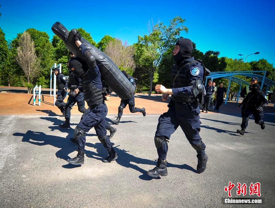 Special police force conducted multi-subject training in Urumqi, northwest China’s Xinjiang Uygur Autonomous Region on May 21, 2015. The training subjects included 110-meter steeplechase, abseiling, physical training, shooting, etc. Established in 2010, the special police force of Xinjiang has played an important role in combating terrorism and maintaining social stability. (Chinanews/Liu Xin)