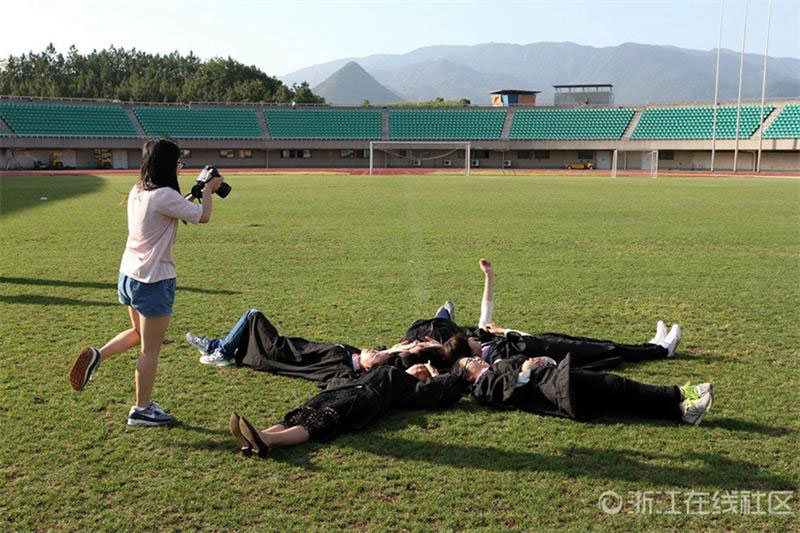 Upon graduation, students wearing various styles of clothes pose for photos to celebrate youth on the campus of Zhejiang Normal University.(Photo/zjol.com.cn)