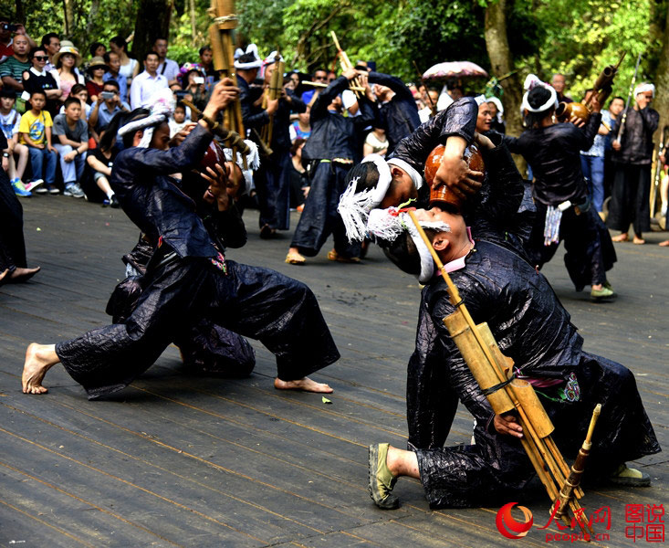 Located in mountain area south of Congjiang county, southwest China’s Guizhou province, Basha Miao village is a remote village that still maintains simple and unsophisticated folkway. With the special approval of the Ministry of Public Security, villagers here can possess guns. With the opening of the expressway and high speed rail that connect Congjiang with other cities, more and more tourists have come to visit this pristine village and watch their traditional dance. (Photo source: people.cn)