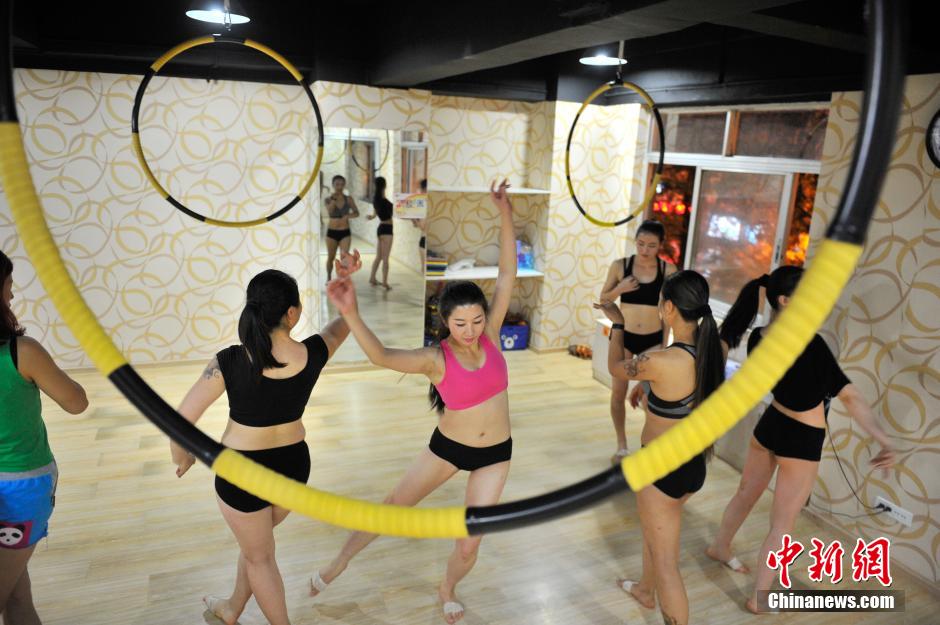 Beauties practice to dance on the rings in Kunming city, southwest China's Yunnan province. (CNS/Liu Ranyang)