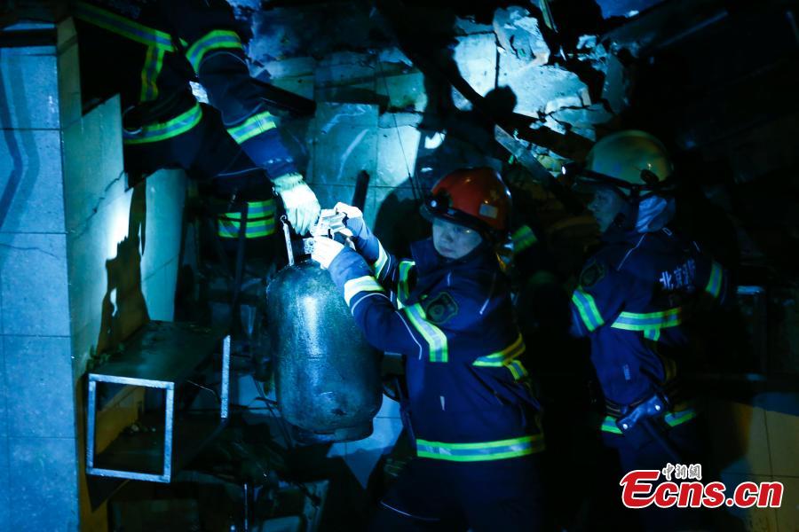 Firefighters put out a fire at a restaurant in Fengtai district, Beijing, May 28, 2015. Houses and cars near the restaurant were also damaged and the cause of the fire is still under investigation.(Photo: China News Service/Fu Tian)