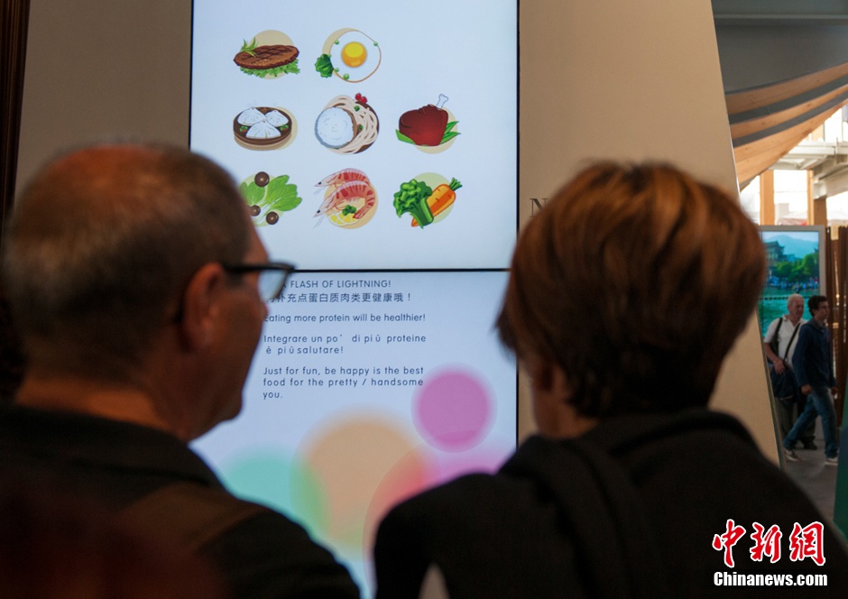 China Pavilion in the shape of golden billowing wheat field at Expo Milan 2015 attracted a lot of attention, May 26, 2015. Besides all the Chinese elements in the pavilion, Chinese restaurants are especially popular among foreign tourists. Dumplings and stir-fried rice noodles are their favorites.