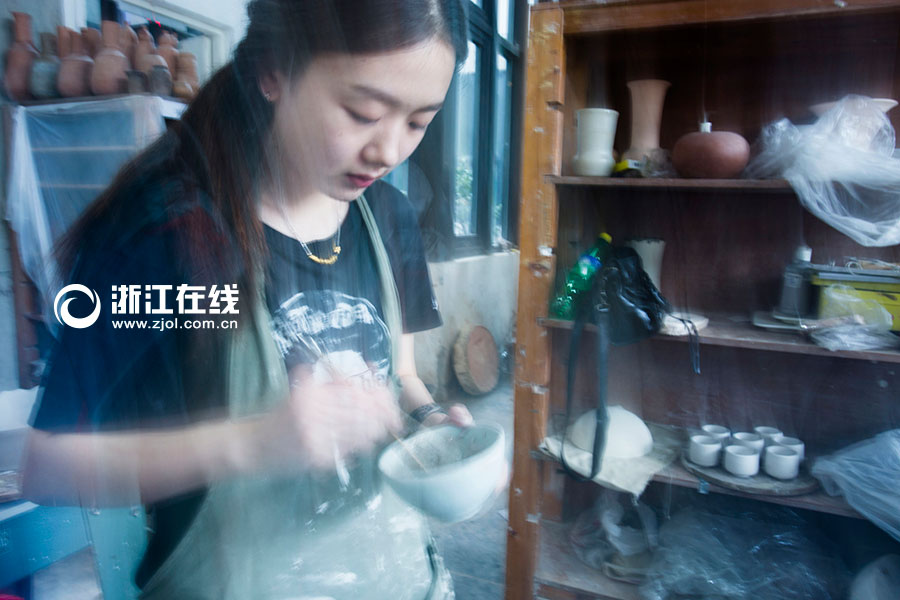 Jiang Yan, born in the 1990s, is a senior at the department of ceramics and crafts, China Academy of Art. In the period before graduation, she devoted considerable time and efforts to making pottery.(Photo/zjol.com.cn)