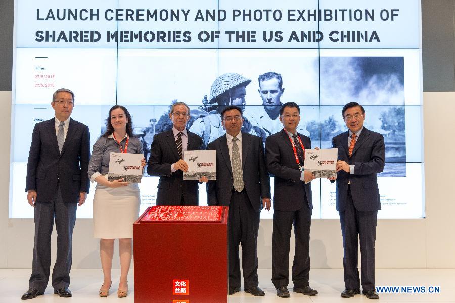 Guests attend the launching ceremony of "Shared Memories of the US and China: The Pacific War Against Japanese Aggression" during the BookExpo America (BEA) 2015 in New York, the United States, on May 28, 2015. A book launch and a photo exhibition of the "Shared Memories of the US and China" in fighting side by side in the Second World War were held on Thursday as part of the ongoing BookExpo America (BEA) 2015. (Xinhua/Li Muzi)