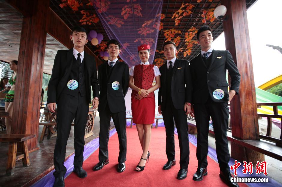 The last round of mass selection of the Guangxi Mr. & Miss Campus Contest is held in Nanning, May 30, 2015. Different from previous rounds, this time many students whlo major in flight attendant signed up for the contest. The winner Mr. and Miss Campus will become image ambassadors for the Nanning City Zoo. (Chinanews/Wang Gang)