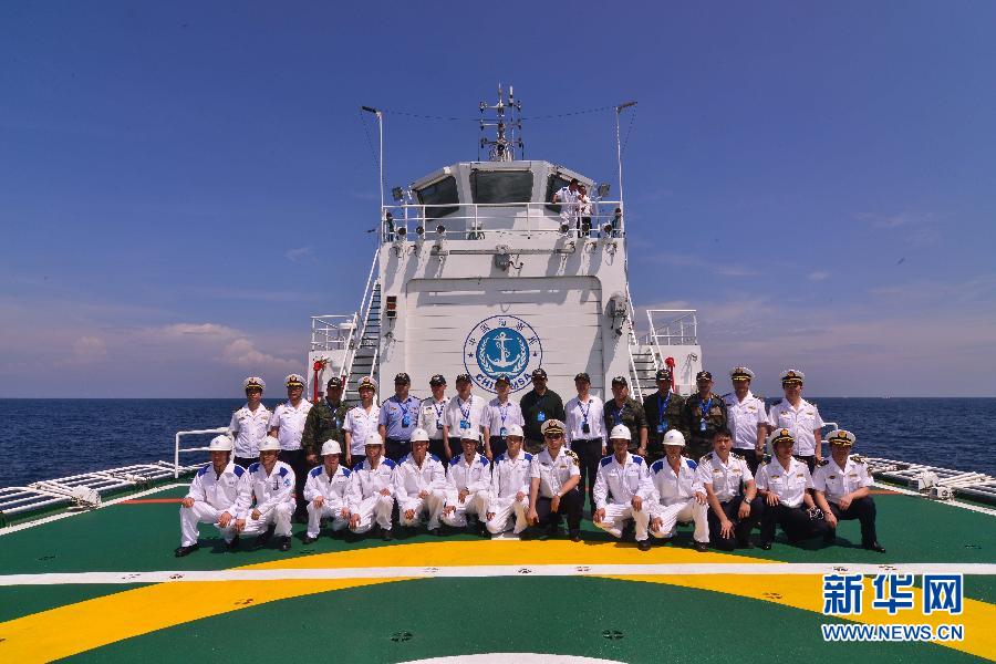 Crew of China's marine patrol ship Haixun 31 and soldiers and officers from other countries pose for a group photo.(Photo/Xinhua)