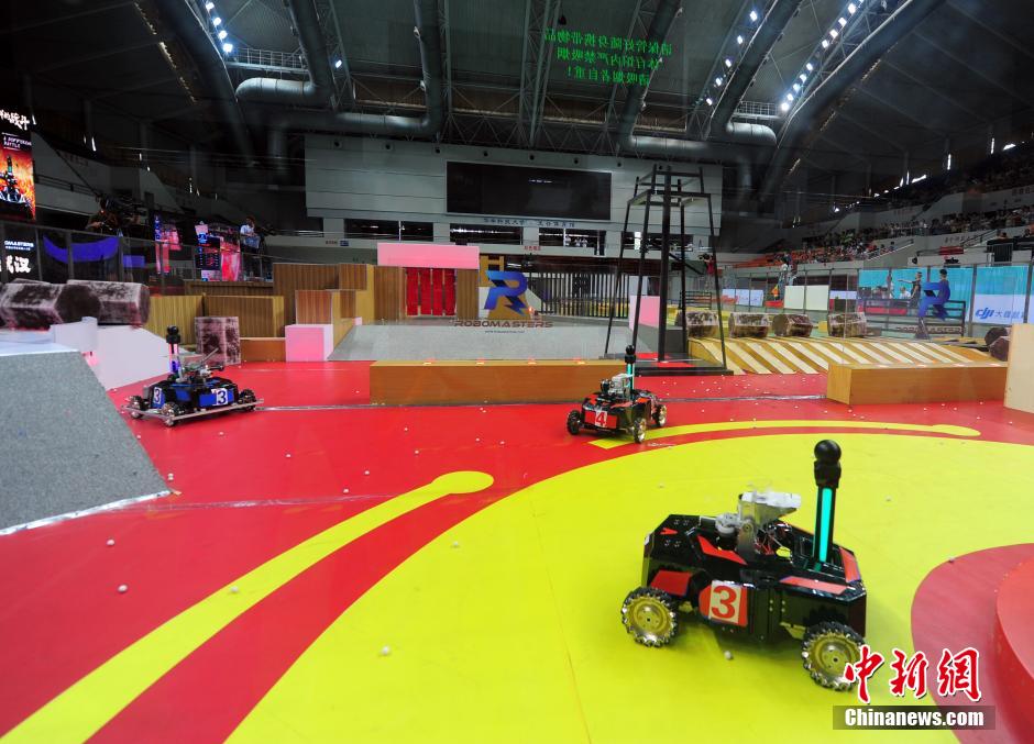 The final of central and south competition areas of 2015 China Robot Competition “RoBoMasters” was held in Huazhong University of Science and Technology in Wuhan, central China’s Hubei province on May 31, 2015. 22 teams from 17 universities attended the game. All the attending robots are developed independently. The 32 winners from different competition areas will take part in the national final in July in Shenzhen. (Chinanews/Zhang Chang)