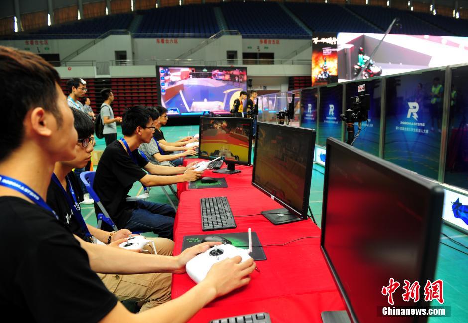 | The final of central and south competition areas of 2015 China Robot Competition “RoBoMasters” was held in Huazhong University of Science and Technology in Wuhan, central China’s Hubei province on May 31, 2015. 22 teams from 17 universities attended the game. All the attending robots are developed independently. The 32 winners from different competition areas will take part in the national final in July in Shenzhen. (Chinanews/Zhang Chang) |