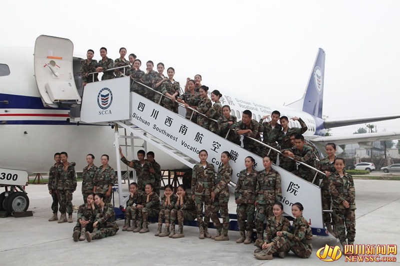 20 pairs of twins who will become flight attendants pose for a group photo in Sichuan Southwest Vocational College of Civil Aviation. (Photo/newssc.org)