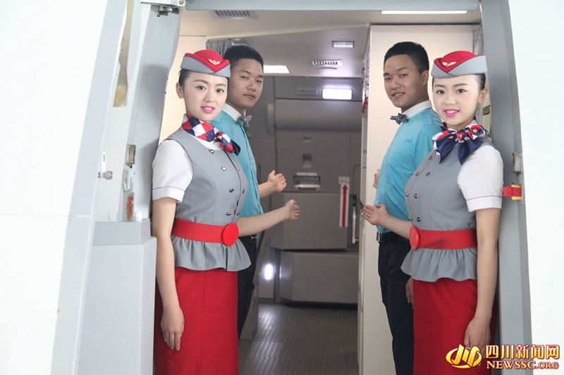 Twins who will become flight attendants take training in Sichuan Southwest Vocational College of Civil Aviation. (Photo/newssc.org)