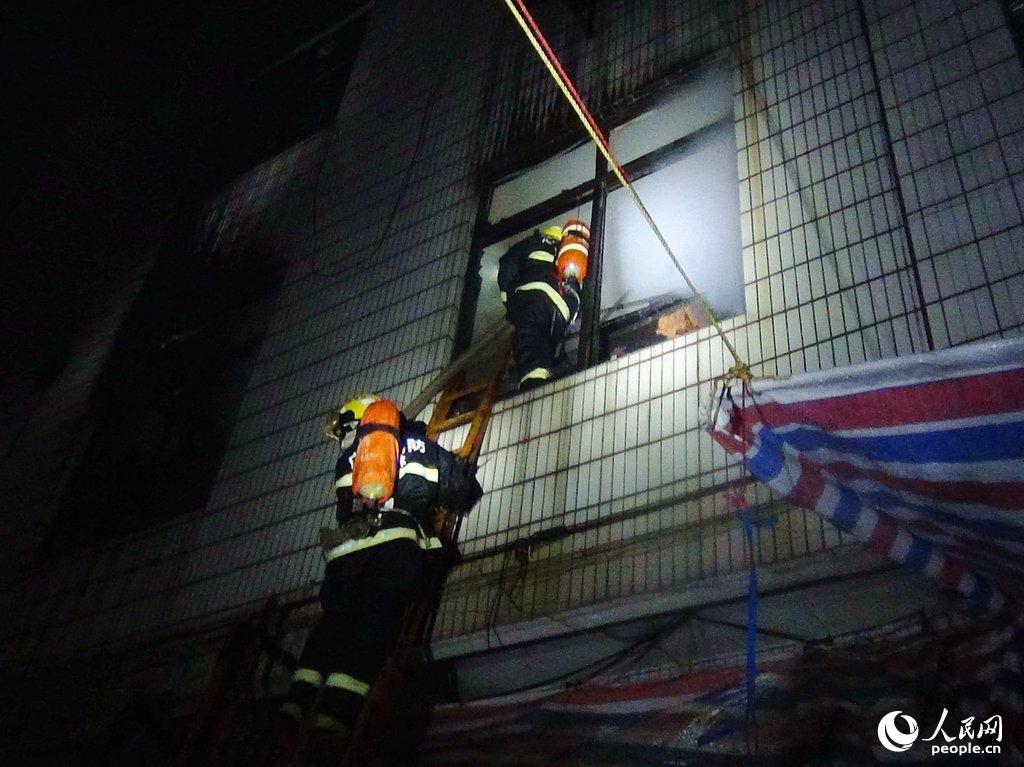 Firefighters climb into the blazing rooms to search for trapped people. (Photo source: people.cn)