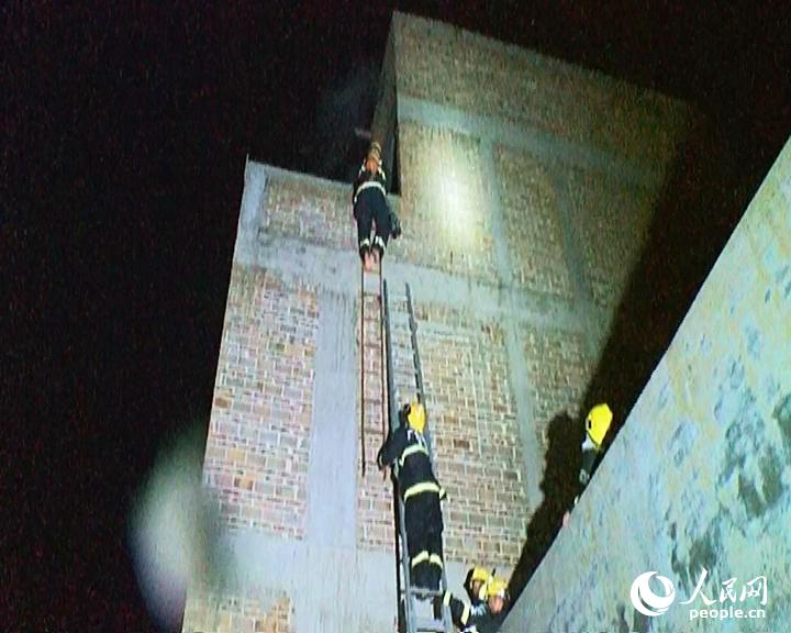 Taking off his shoes, Yang Kezhang climbs to the fifth floor through the hook ladder. (Photo source: people.cn)