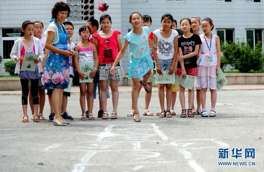 Pupils play hopscotch in a primary school in Shenyang, capital of northeast China's Liaoning province, July 14, 2010. (Xinhua/Zhang Wenkui)