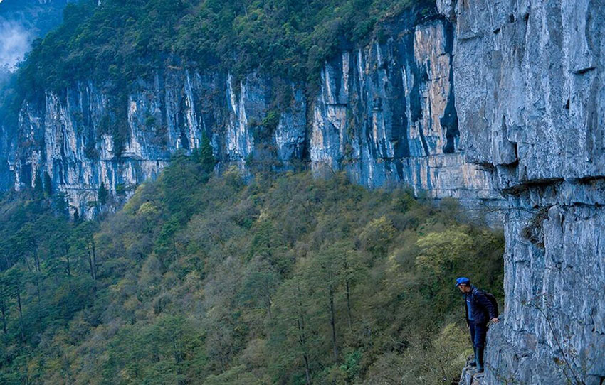 Every May, villagers will pick cubiloses on the cliff of Maoke Mountain, Hanyuan county, southwest China's Sichuan province. They walk back and forth on the cliff path less than 20 centimeters wide. Picking cubiloses is an important way that they earn money for living.