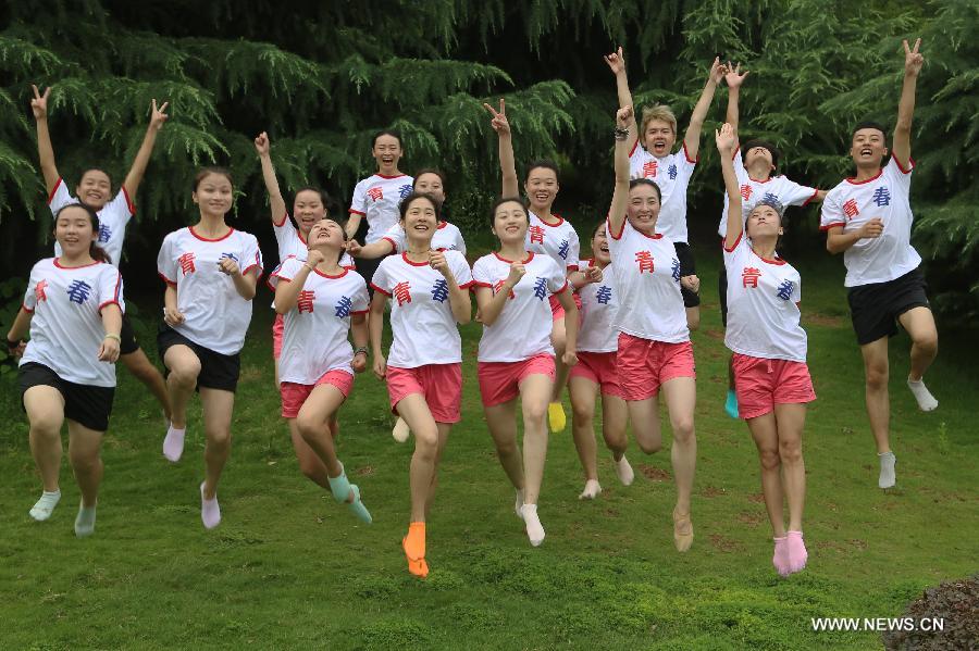 Graduates of the dance troupe at University of South China pose for a graduation photo in Hengyang, central China's Hunan Province, May 19, 2015. As the graduation season comes, graduates are busy with taking creative graduation photos at campuses. (Xinhua/Cao Zhengping)