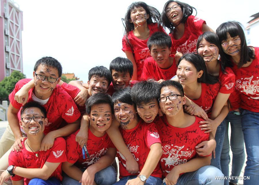 Graduates of the No. 1 Middle School of Daoxian County pose for a graduation photo in Yongzhou, central China's Hunan Province, June 2, 2015. As the graduation season comes, graduates are busy with taking creative graduation photos at campuses. (Xinhua/He Hongfu)
