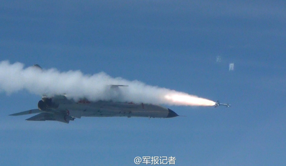 In mid May, more than 20 naval air force pilots from the PLA Navy North Sea Fleet launch missile attacks in the real combat-liking trainings in the Bohai Sea. These trainings aim at enhancing the pilots' battle awareness and emergency response awareness.(Photo/81.cn)