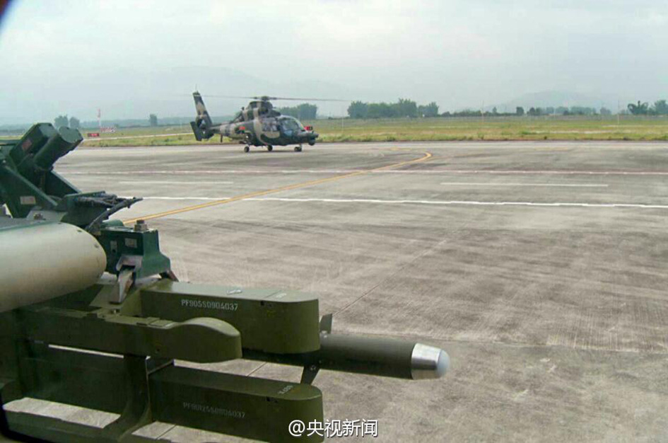 Troops from Chengdu Military Region started a land and air live-fire drill on Tuesday along a part of the border with Myanmar. The real combat-like drill aims at safeguarding China's border security and aviation security and protecting people's lives and property.(Photo/Microblog of CCTV)