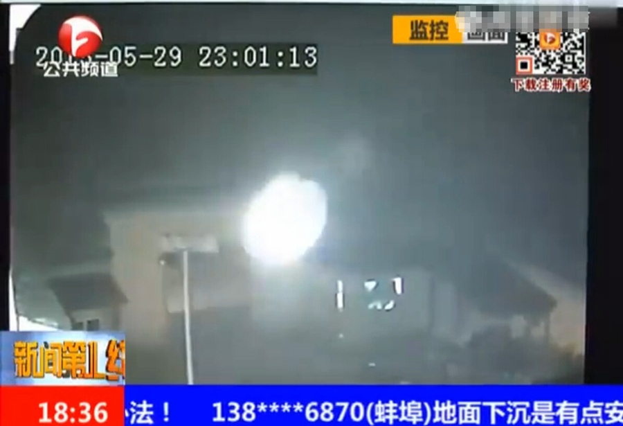 According to a report of Anhui Television, a UFO appeared at the Baita Temple of Bagong Mountain in east China's Anhui province at the midnight of May 29, 2015. According to the camera record, a UFO hovered over the temple for seven minutes; meanwhile its shape changed. (Photo/TV screenshot)