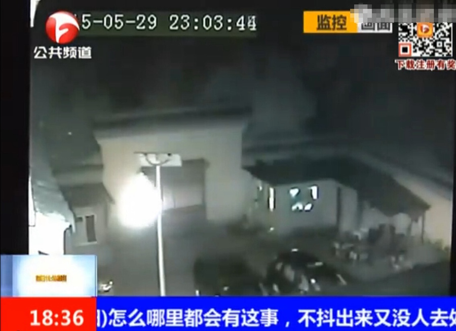 According to a report of Anhui Television, a UFO appeared at the Baita Temple of Bagong Mountain in east China's Anhui province at the midnight of May 29, 2015. According to the camera record, a UFO hovered over the temple for seven minutes; meanwhile its shape changed. (Photo/TV screenshot)