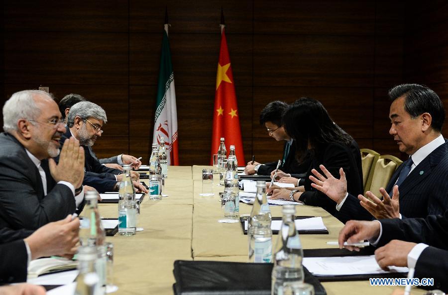 | Chinese Foreign Minister Wang Yi (1st R) meets with his Iranian counterpart Mohammad Javad Zarif (1st L) in Moscow, capital of Russia, June 4, 2015. (Xinhua/Jia Yuchen) |